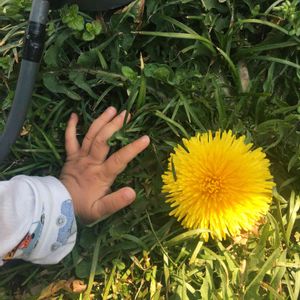 散歩中に娘の手とほぼ同じ大きさのたんぽぽを発見。