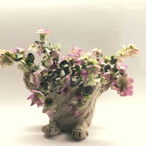 娘と作った縄文土器と花壇のオレガノのドライフラワー。スモーキーカラーで好み。