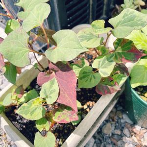 斑入りドクダミ? 先住の方が残してくれた植物です。 工事で花壇を潰さないといけなくて、ヘデラだと思っていたので救出しました。 縁が赤くなっている葉や赤い斑が入っている葉があったりしますが、何故かあまり大きくならず、いつの間にか葉っぱが枯れていたりします。でも、絶えることはなく、ミニサイズのままこんな感じです。 久しぶりに枯れた葉を処理したら、ドクダミの臭いが( ̄▽ ̄;) やっぱりドクダミですよね? でも、キレイに斑が入るので、寄せ植えに使ってました🤭 強すぎるかと思いきや、ペチュニアやビオラに負けてます( ̄▽ ̄;)