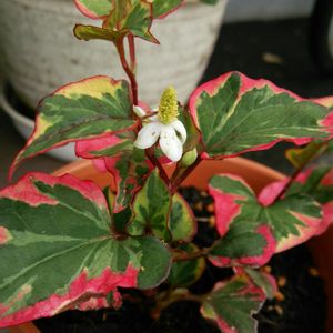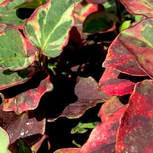 斑入りドクダミだよっていただいたものですが、日の当たる場所に置いたらみるみる真っ赤に‼️