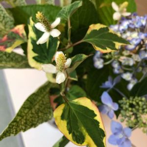 家の軒下に植えてある八重のドクダミと、斑入りの葉っぱのドクダミの花です… 1つだけ見るととても綺麗なのですが、増えますね😅。 庭に咲いていたら、すぐに抜いてしまうところなんですけどね👀