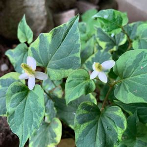 斑入りドクダミ、お花が咲いています✨ 普通のドクダミの花と同じですが、可愛い〜❤️