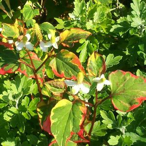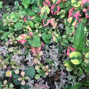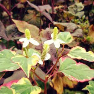 斑入りドクダミが花盛りです ゴシキドクダミ、五色葉ドクダミ、カメレオン いろんな呼び名があるようです