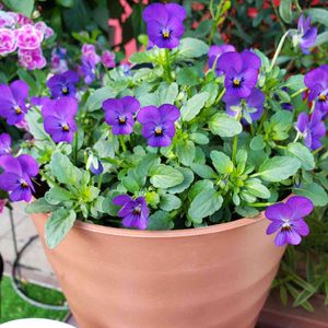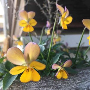 春からずっと元気な極小輪ビオラのフィーリーちゃん 切り戻しのタイミングがつかめなくて放置してるからワサワサしてるけど自由奔放も悪くないかな😊