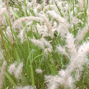 猫の毛のような柔らかい穂がいっぱい群生しています。 下の方からピンクのネジバナも伸びてきてコラボ💞 このフアフアちゃんは何?