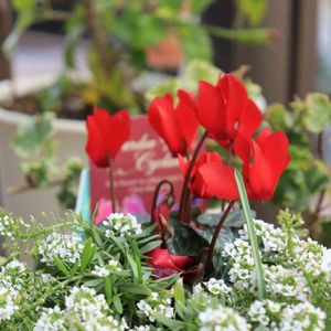 今日のお花🌸ガーデンシクラメン あいち花マルシェのイベント会場にて💕 キュートなハート型アレンジに💘😍