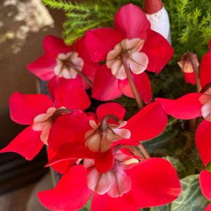 ガーデンシクラメン💞 今年は赤いシクラメンを寄せ植えしています。今日は昨夜の☔の後冷えてます。暖かくしてお過ごしください🤗12月もよろしくお願いいたします😀