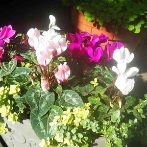 ☀️ガーデンシクラメン3種🪴の寄せ植えをして半月🌗元気に咲いてくれてます。嬉しいなぁ(*´︶`*)ฅ 綺麗だなℓσνє♡12月も、みなさんが幸せでありますように🙏 哀しいことがあった今年でも、なにか 自分自身のぴかぴか😉💫を探せたらいいですね❀.(*´▽`*)❀.