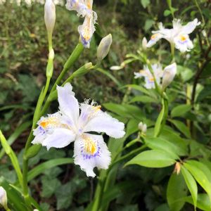 20180614 アヤメ科アヤメ属の多年草 #ヒメシャガ・#姫射干 シャガより小型で似ている 白っぽい紫のアヤメに似た花 花弁に濃い紫と黄色の模様 葉は艶のある緑色の単面葉