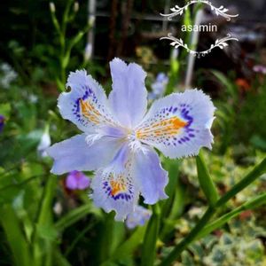姫射干 草丈わずか15センチほどのヒメシャガです。 やっと一輪だけ咲きました(^^) 凛として、背筋がピンとします。