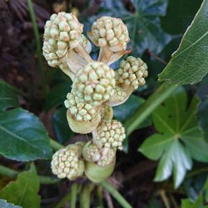 ヤツデ の花って、雑貨屋とかで売ってるオブジェっぽいと思うのは俺だけでしょうか😊花期も長くて結構好きなんです😄