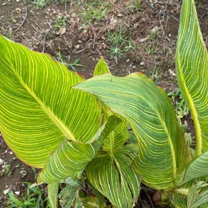 畑に植えたカンナクレオパトラ❤︎ 最初はマーブルだったのにほとんど銅葉になってしまいました😆 これから大きくなるにつれてでてくる葉はまたマーブル模様の葉になるのでしょうか?わかる方教えて下さい🙇♀️