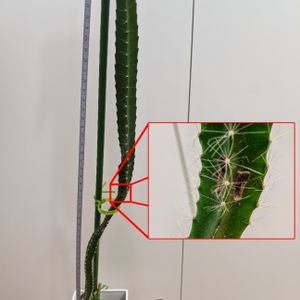 今は全長90cmくらい🌵 先に行くほど太くなるし棘が痛いし、支柱より長くなってるし、根本は細くて弛むし、管理がタイヘン もう摘芯してしまった方がいいのかな?太い部分だけ残して植え直すべきか悩む 簡単に発芽するからって、気安く種から育てるもんじゃないなコレ