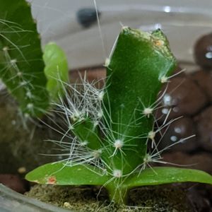 サボテンから気根がたくさん出てきた これで近くの木に寄生する習性なんだっけ? もうすぐ表面から出てきそうな気根も手前に見えてる(笑)