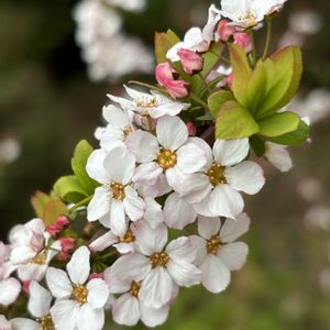 実家の放置されていた鉢に 何か生えてて…🙄 何だかわからなかったけど 母が取っといてって言うので植え替え🪴 兄は雑草だろうって言ってたけど〜🤔 なんと、可愛いお花が咲きました😍 わからなかった子の正体は… なんと、こぼれ種で育ったらしい ユキヤナギでした〜٩( ᐛ )و♡ 2枚目は兄が植えた河津桜🌸 今年も綺麗に咲きました(*´∨`*)ノ゚.+:。