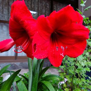 おはようございます。 今日のお花🌼、アマリリスです。 実家で、咲いています。 ミニトマト🍅、中玉トマト🍅、万願寺とうがらし、きゅうり🥒、初収穫です🎵