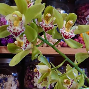 お友達から頂いたシンビジウムの大きな3個の鉢✨ 1本目が咲きました🙌😊✨ 少しちっちゃい可愛いシンビジウムさん✨😊✨