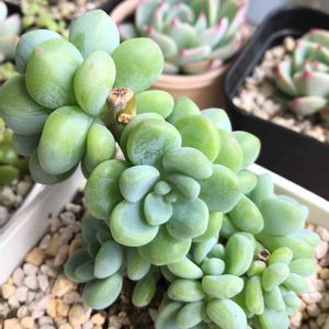 放置多肉のエケベリア養老さん。 枯葉だらけだったので取ってみたら、とっても子だくさんになっててびっくりです☺️