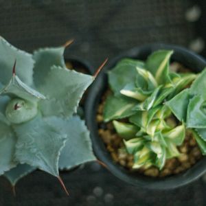 こんばんは〜☺️ いつも雨の日は雨がかからないように軒下と部屋の中に避難させますが、今日はみんなカラカラにかわいていたので全部雨ざらしにしてみました。 帰ってくるまでちょっとドキドキでした😅 特に強い雨も降らず、それほど気温も下がらずで良かったです😆 みんなぷっくりしています🐷🌳🌵🪴 ユーフォルビア 白肌ホリダ❣️ 親は全然大きくなりませんが、子達はどんどん大きくなって来ました😆 まだ全然白肌ではありませんが、少しづつ粉を吹いています✨ 出てきた時は真っ赤な棘でしたが、いまは赤茶に変わって渋さ増し増し( ˘͈ ᵕ ˘͈♡)