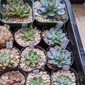 いい感じに育ってくれてます❣️ 我が家は、今月に入ってからの多肉ちゃんたちの成長が凄いです✨ 葉挿したちも立派に育ったので、ビニポットに鉢上げしました😌💖