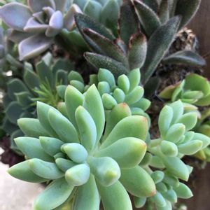 真冬の間は簡易温室に居てもらったピーチ姫。 だんだんと色白&葉焼け状態の酷い姿になって来て、はわわわわ😲と慌てて簡易温室から出してやりました。 ストレスでも葉焼けみたいになるとか言う人もいて、まだ寒いけどそこが嫌なのね、とピーチ姫の気持ちになって考えた3月🤔 今じゃラメラメピンクのムチムチボディが戻ってきて、お子様も付けてます。 枯れたっぽいところは何処へ行ったのか。 なかなか多肉ちゃんの気持ちは分からない。 ここのところ、調子がいまいちなパステルちゃんの事を考えるとまだ憂鬱なのです。