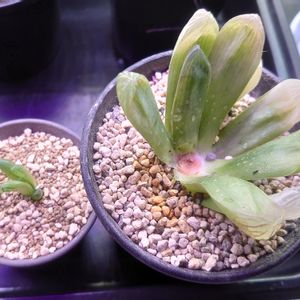 ぎゃぁぁぁ!😵 ちょっと目を離した隙に中心から溶けていました😭 大慌てで患部切除して、軟腐病対策のストレプトマイシンで消毒&植え替え… ついでに出てた脇芽を株分けしました。。他の株にも散布散布😓 成長点は失いましたが胴切りの要領で芽が出てくれるといいなぁ… 子株も感染していませんように!生き延びて! 今までも外葉が溶けた株は幾つか有りましたが、成長点をやられたのはこの株が初めてです😰 皆様もお気をつけください。。。