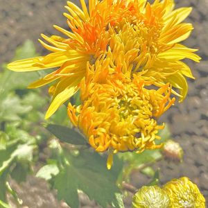 昨日の咲く途中だった 歩道にとび出てくる菊 何日か後咲いたpicです