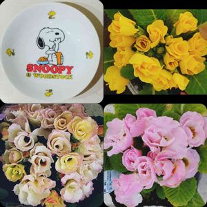 おはようございます🖐️😊☀️ 今日は嬉しい「ワンワン祭り」😆⤴️💓 ↖️長年愛用しているスヌーピーのお皿で参加させて下さいね😉 バラ咲きジュリアンサン達です😍 ↙️ブーケ💐咲きになりました😆⤴️💓 ↗️花数が増えて来て元気くれます😍 ↘️可愛いピンクをHCで見つけました😍 🌱は傷んでいて少しお値下げされていましたが、元気に咲いてくれています😍