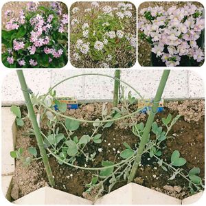 こんにちは👋😃⛅ ↖⬆↗先ほど、柏市にあるフォロワーさんの原澤園芸さんに行きお迎えして来ました😍 ・ピンクの忘れな草サン ・スーパーアリッサムのフロスティナイトサン ・香るネメシアサンは、ネメシアメーテルのエレーヌと言う名前がついていました😊 ⬇昨年ボンザマーガレットを植えていたのですが枯れてしまい😭 その跡地にスイトピーサンを植えました😍