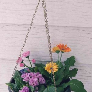 こんにちは👋😃☁️ 先日、ダイソーで吊り鉢買って来ました😃 もう少し暖かくなったら、何か植えようと思います😊 今はポリポットのお花サンを入れて、玄関に飾っています😊