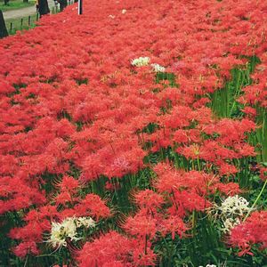 こんにちは👋😃☀ 私も彼岸花サン見に行って来ました〜😊 ここは埼玉県の幸手市にある、権現堂という所です😊 土手沿いにずっ〜と彼岸花サンが咲いています😍 圧巻でした😍 所々に、アイボリーの彼岸花サンがアクセントになっています😍