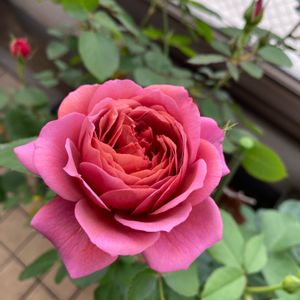 あおい 満開😍 数年前、春に買おうと決めていたのに突然一般販売なくなってしまって…あの時の衝撃たるや😅 その後お部屋で育てるバラというタイプの苗を買って、やっとここまで大きくなりました😆 今年は念願のベーサルシュートもでて、絶好調です😊