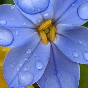 おはようございます♪ モジャモジャの葉っぱの間から顔を出して咲いたアイフェイオン🩵