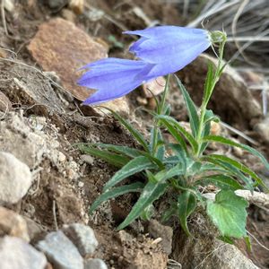 おはようございます😊 今日も朝から既に暑い💦 一昨日、花友さんに御嶽山に連れて行ってもらいました.•*¨*•.•*¨*•.¸¸🎶💞•*¨*•.¸¸♬︎ロープウェイ🚠を降りて直ぐに迎えてくれたのがヒメシャジン(姫沙参)💓•*¨* 友人が直ぐに見つけて教えてくれました👀 高山の砂礫地や岩場に咲くと書いてありましたが渇いた土のところにこのひとかたまり🌿💜✨✨💜✨✨💜🌿御嶽山の7合目、涼しさに更に涼しさを与えてくれてます 花言葉は❁*.:。❁ ♡可憐な振る舞い あやかりたいものです😆