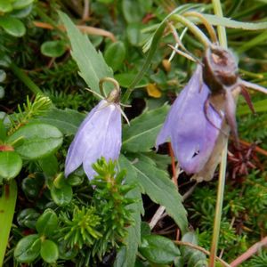 姫沙参(ヒメシャジン) キキョウ科 本州の中部地方以北の亜高山帯〜高山帯の砂礫地や岩の間に生える多年草。 15cm位の草丈です。岩沙参と迷いましたが葉の形から姫沙参としました。 木曽御嶽山7合目(2150m)、涼しい風に吹かれて一塊咲いていました。