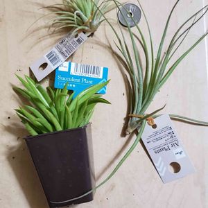 今日のニューフェイス@DAISO 鉢に入っているのはペペロミアの仲間と思われます。 上の小さいチランジアは、さわり心地がモケモケしています