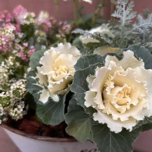 🎍お正月の寄せ植え✨ 葉牡丹 メッシュの子がいました•ᴗ•ꕤ*初お目見え✨✨ スキミアとストックがとてもいい香りがするみたいなので、楽しみです(*ˊ˘ˋ*)。♪:*°
