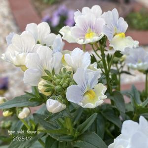 今日は気温上がらない予報で屋内作業中心〜😅 可愛い小花を2つ🎵 ①② ネメシア ピンクレモネード 今ピンクは、ほぼ消えてます💦 ③ ステラ スノーストーム グレイシアブルー 花付きの苗を植込みしました😊
