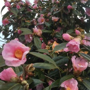 おはようございます😃 昨日小学校で咲いていた椿 なんだかバラみたい。😌 今日は金曜日 ユーミンコード聴けますね🧡 雲行きが怪しいですが花の手入れしないと、、🌸🌸
