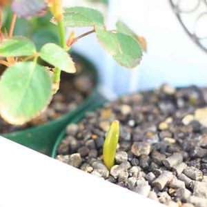 やった〜٩(๑>▽<๑)۶ GSで見て欲しくなったお花 待ちに待った芽が鉢植えから3つ出てきました! 手前に出ている芽のズームを見ると花らしき色が😍 残り2つの芽はどこでしょう?😁