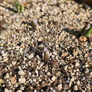 プスキニアリバノチカが芽吹きました!そのうち1つはつぼみが見えている。 地面に直に花が咲くの? 眠ったように静かだったプスキニア、おはようネ。