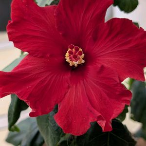 室内から出して1週間。 真っ赤🔴なハイビスカス🌺咲いてくれました🥰❤️❤️❤️