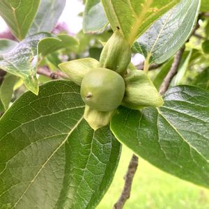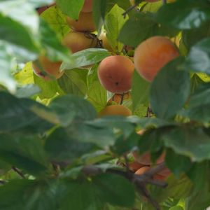 カキ(柿) 今年も果実の成長を見守ります。難題は熟柿を狙って来るハクビシン対策でしょう。