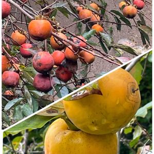 今日のお花「カキ」ですが、カキの花を撮り損ねてお花はありません🙏💦 ①② 家の直ぐ横にある次郎柿 去年は豊作でしたが今年は不作でポツポツです💦 その代わり不作だった裏庭のその他の柿は豊作です✨ ③④ 裏庭に勝手に生えてきた豆柿 多分次郎柿の台木だったのか、次郎柿の下の方に生えてる豆柿を🐦が運んだみたいです😅 実の大きさは2cm位 義母が言うには黒くなると甘くなるらしい🙄 ⑤ 2~3日☔みたいですが、干し柿...始めました💦😅 冬の楽しみの為にチマチマこんな風に作業していきます😑