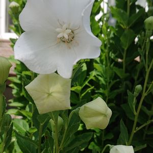 **桔梗** 白い桔梗も 紫の桔梗も 中のお花は白でした***♡ あれっ…ツートンカラーの桔梗のまん中が…ヘンダ