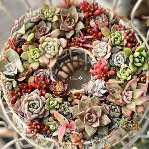多肉と木の実のミニリース✨✨ 手のひらサイズのミニリース が 昔から大好きで 茶こしリースとか サボテンのミニリース 木の実のミニリースとか 色々作ってきました♡ ✨