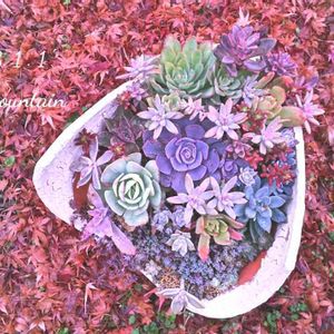 【 1HA'lease*soul 】 この前までは落ち葉が赤かったのに、 もう、枯色ですね♪ 色の無くなる、 これから山の本格的な冬です。 尚更に、 多肉達の色が鮮やかに❇️