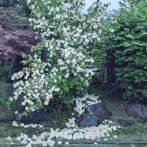 笠間市、今日は雨。 頑張って咲いてたオオデマリ、悲しいかなたくさんの花が、落ちてしまいました。