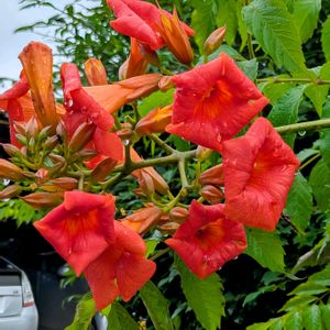 ノウゼンカズラ、今年もたくさんの花を咲かせてます。 暑い夏が、近づいてるんでしょうね。