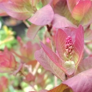 花のような新芽がキレイと思っていたら、新芽の中心から花芽が見え始めていました。 スモークツリー.リトルルビー✨
